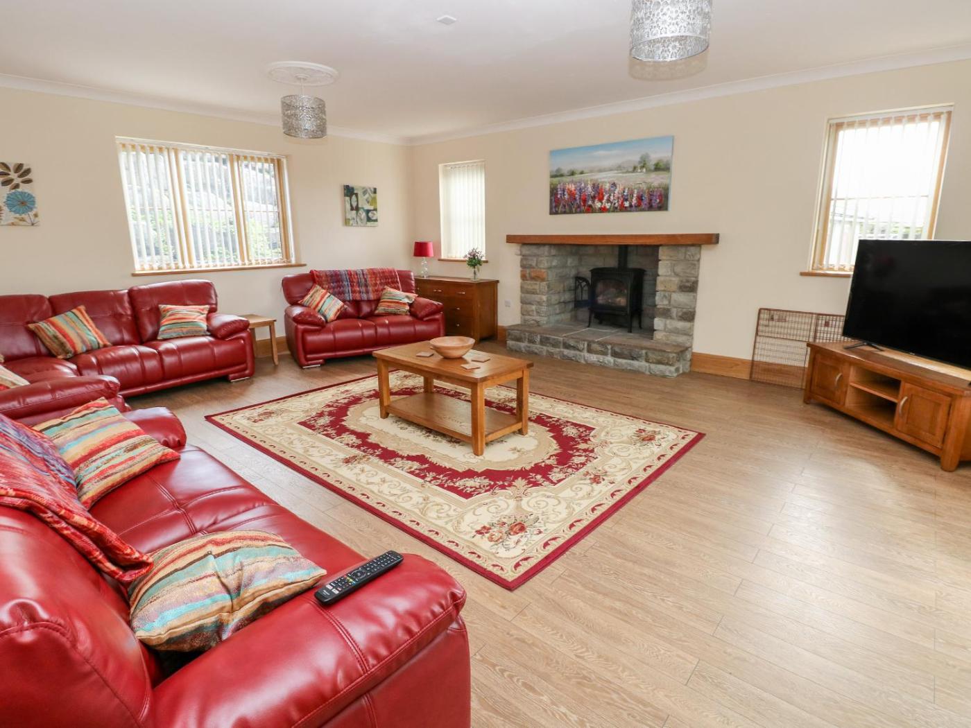 Holiday Home. This spacious holiday home features 5 bedrooms, a seating area with a sofa and 5 bathrooms with a walk-in shower. A kitchen fitted with a stovetop, a refrigerator and a dishwasher is available for cooking and storing food. The holiday home features a washing machine, a dining area, a wardrobe, tumble dryer, as well as a TV. The unit has 6 beds.