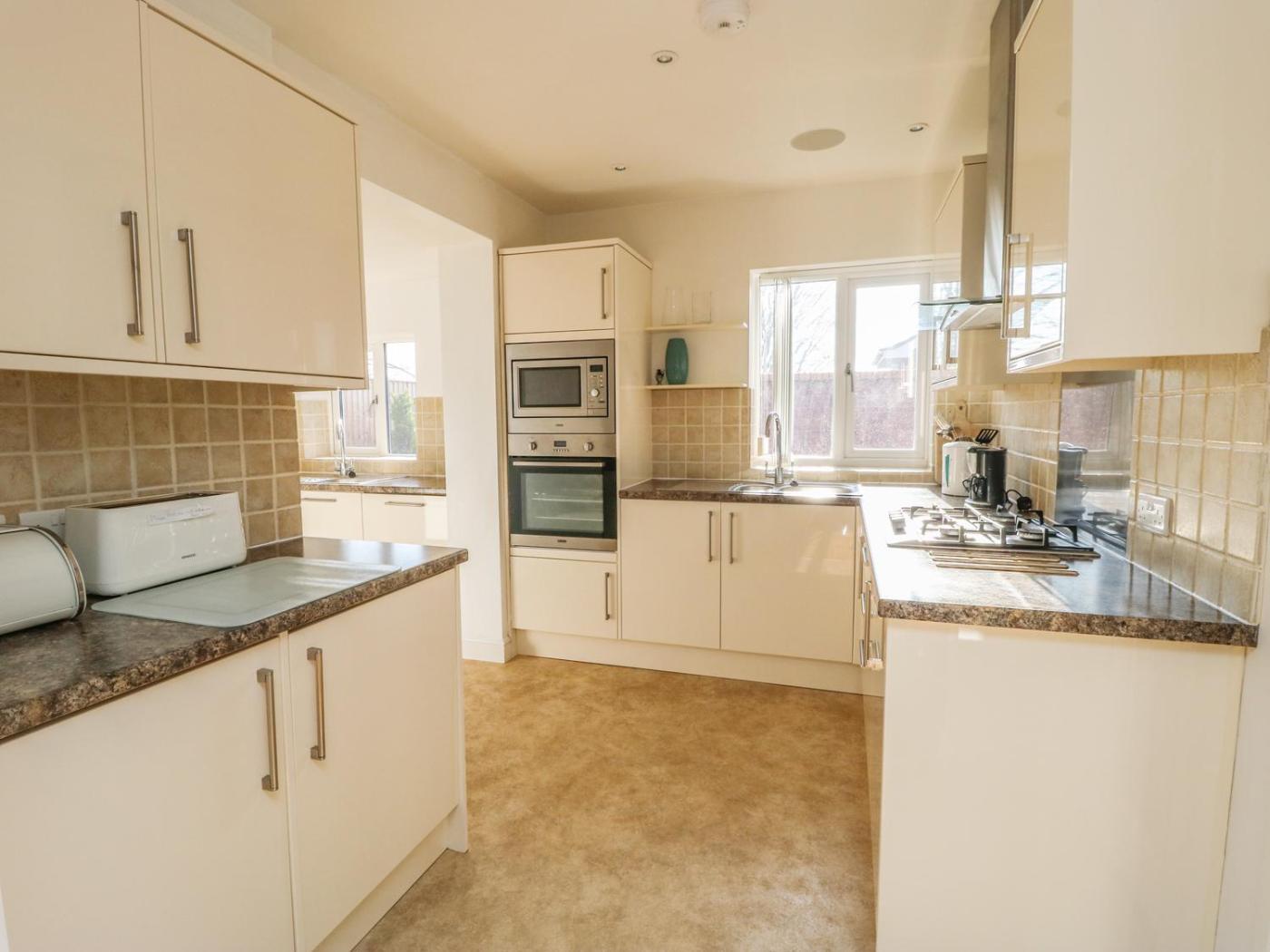 Holiday Home. This spacious holiday home comprises 3 bedrooms, a seating area with a sofa and 1 bathroom with a shower. The kitchen comes with a stovetop, a refrigerator and a dishwasher. The holiday home provides a washing machine, a dining area, a wardrobe along with a high chair for children. The unit offers 4 beds.