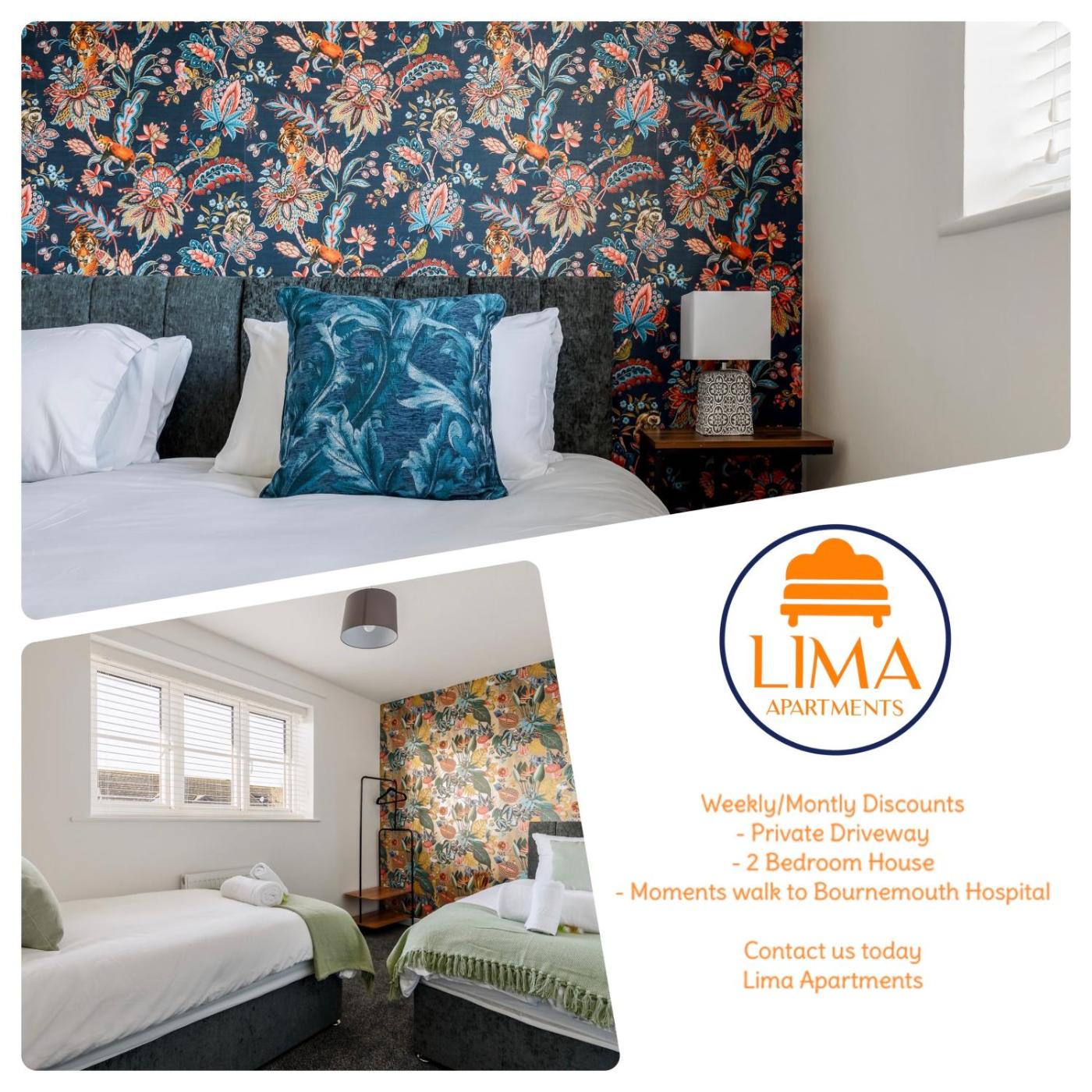 2 bedroom House-Driveway - Bournemouth Hospital - Long Stay Discounts - Lima Apartments Ltd