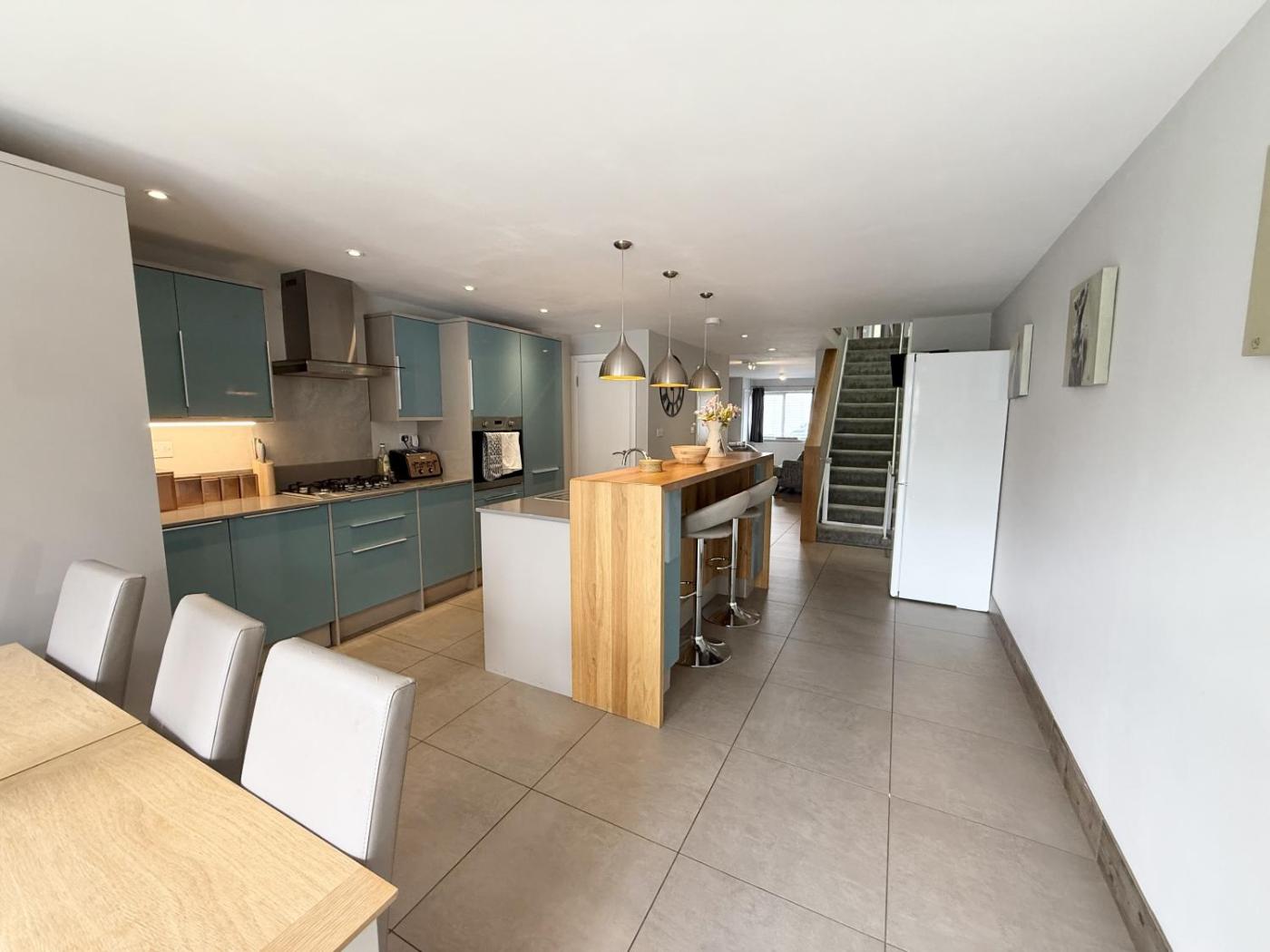 Three-Bedroom House. Boasting a private entrance, this holiday home comes with a kitchen, 3 bedrooms and 2 bathrooms with a bath and a hairdryer. Guests can make meals in the kitchen that features a stovetop, a refrigerator, a dishwasher and kitchenware. Featuring an outdoor dining area, this holiday home also features a washing machine, a tea and coffee maker and a flat-screen TV. The unit has 3 beds.
