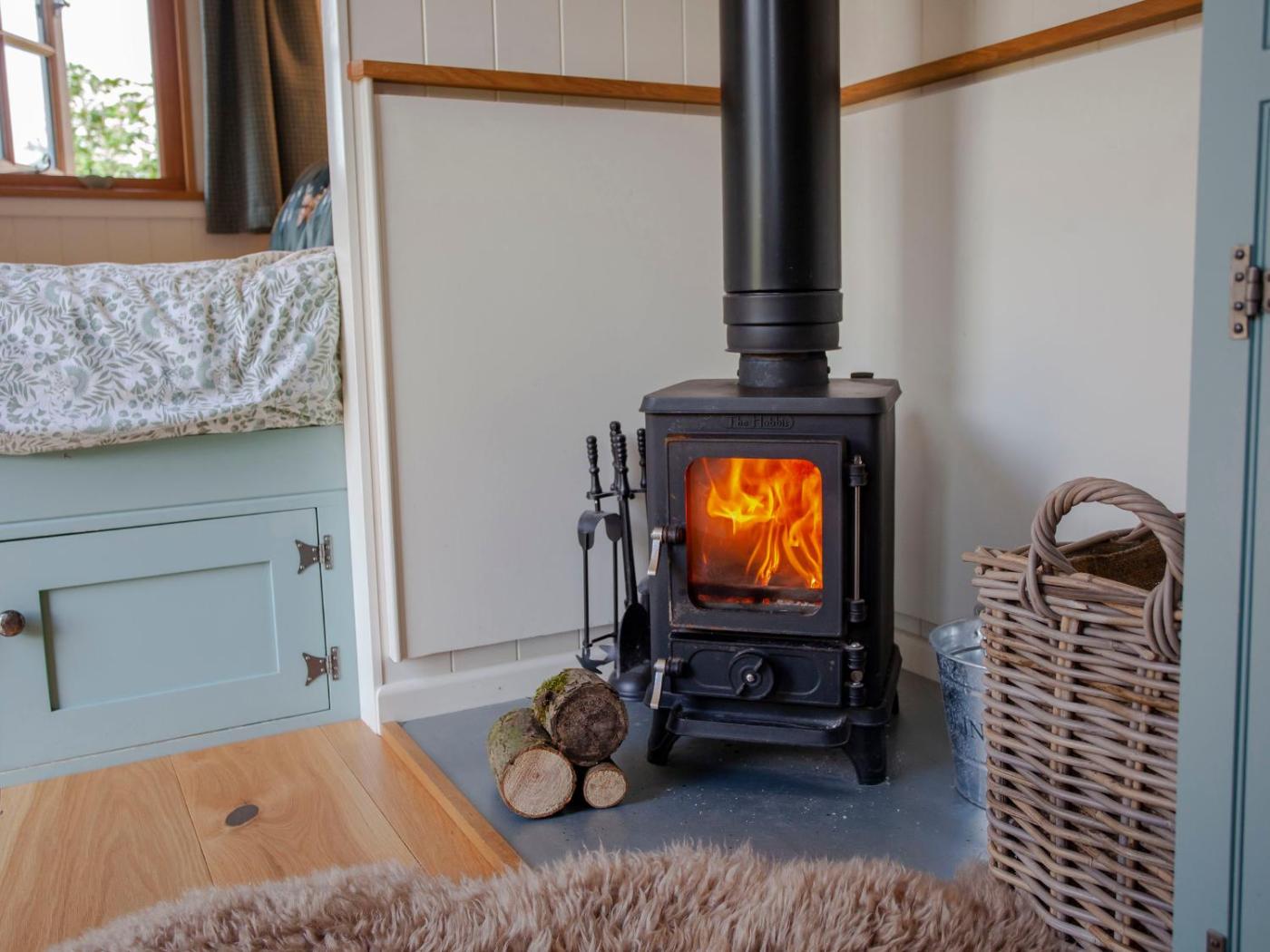 Holiday Home. The fireplace is a top feature of this holiday home. This holiday home comes with 1 bedroom, a seating area with a sofa and 1 bathroom with a walk-in shower. The fully equipped kitchen has a stovetop, a refrigerator, a toaster and an electric kettle. The holiday home features a dining area, a wardrobe and heating. The unit has 1 bed.