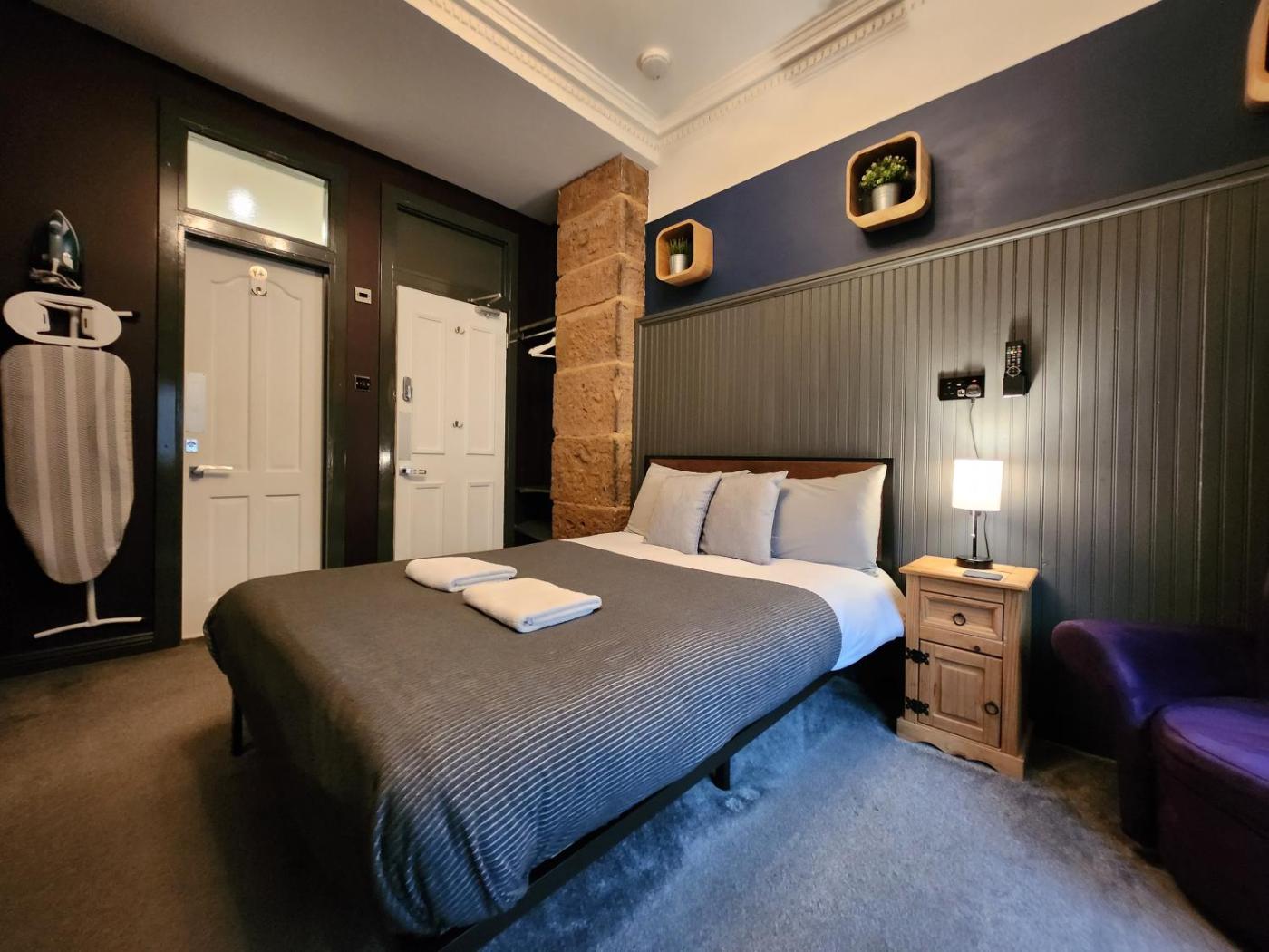 Budget Double Room with Private External Bathroom. The double room offers a private entrance, a tea and coffee maker, as well as a private bathroom boasting a walk-in shower and a hairdryer. The double room provides a seating area, a wardrobe, a carpeted floor, heating and a flat-screen TV. The unit has 1 bed. ;