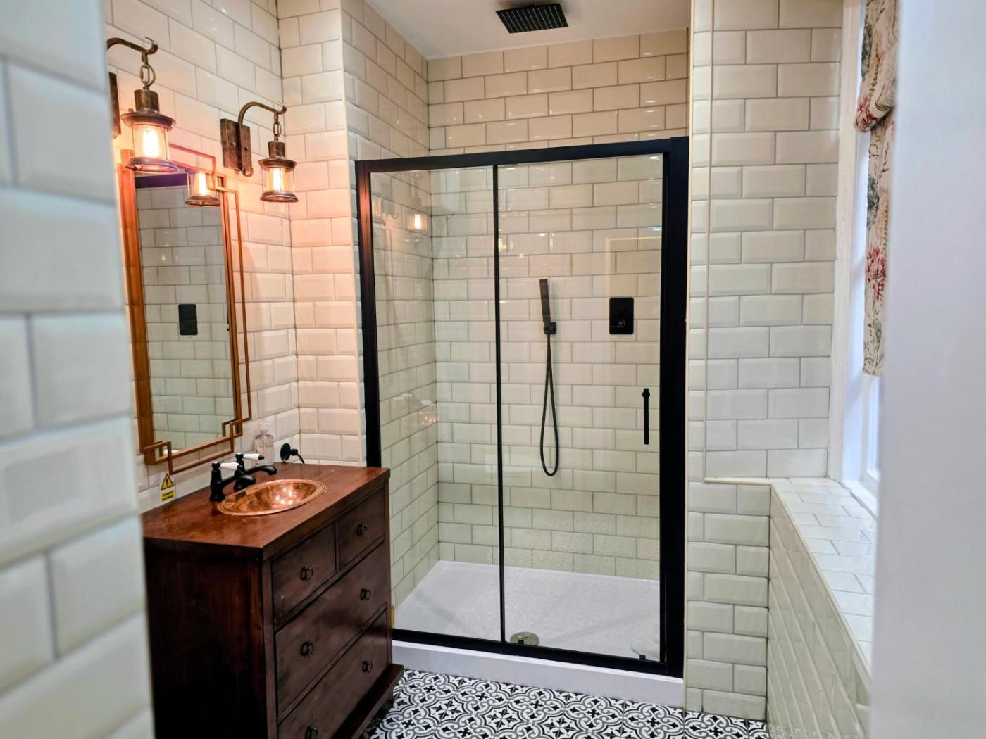 Triple Room. Traditionally designed triple bedroom with original wood beams benefits from 1 single and 1 double bed. The en suite comes with a shower, although guests can request a bath if they prefer. Room amenities include Freeview TV and teacoffee making facilities. ;