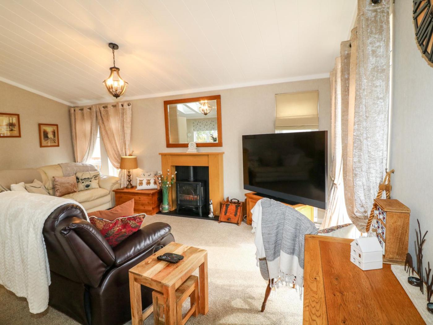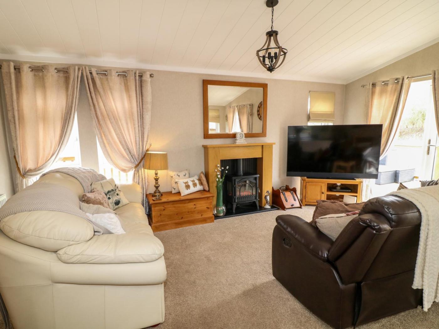 Holiday Home. This holiday home offers a fireplace. This holiday home comprises 2 bedrooms, a seating area with a sofa and 2 bathrooms with a walk-in shower. Guests can make meals in the kitchen that comes with a stovetop, a refrigerator, a dishwasher and an oven. The holiday home provides a washing machine, a dining area, a wardrobe, tumble dryer, as well as a TV. The unit offers 2 beds.
