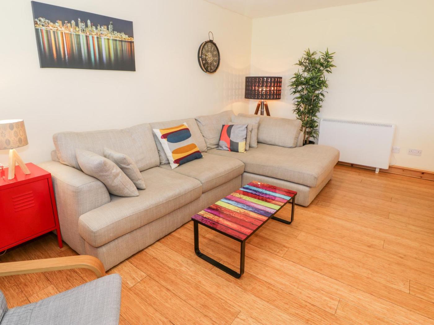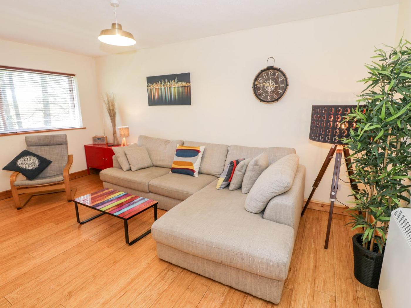 Holiday Home. This spacious holiday home comes with 3 bedrooms, a seating area with a sofa and 1 bathroom with a shower. Guests can make meals in the kitchen that features a stovetop, a refrigerator, a dishwasher and an oven. The holiday home features a washing machine, a dining area, a wardrobe, an electric kettle and a TV with streaming services. The unit has 3 beds.