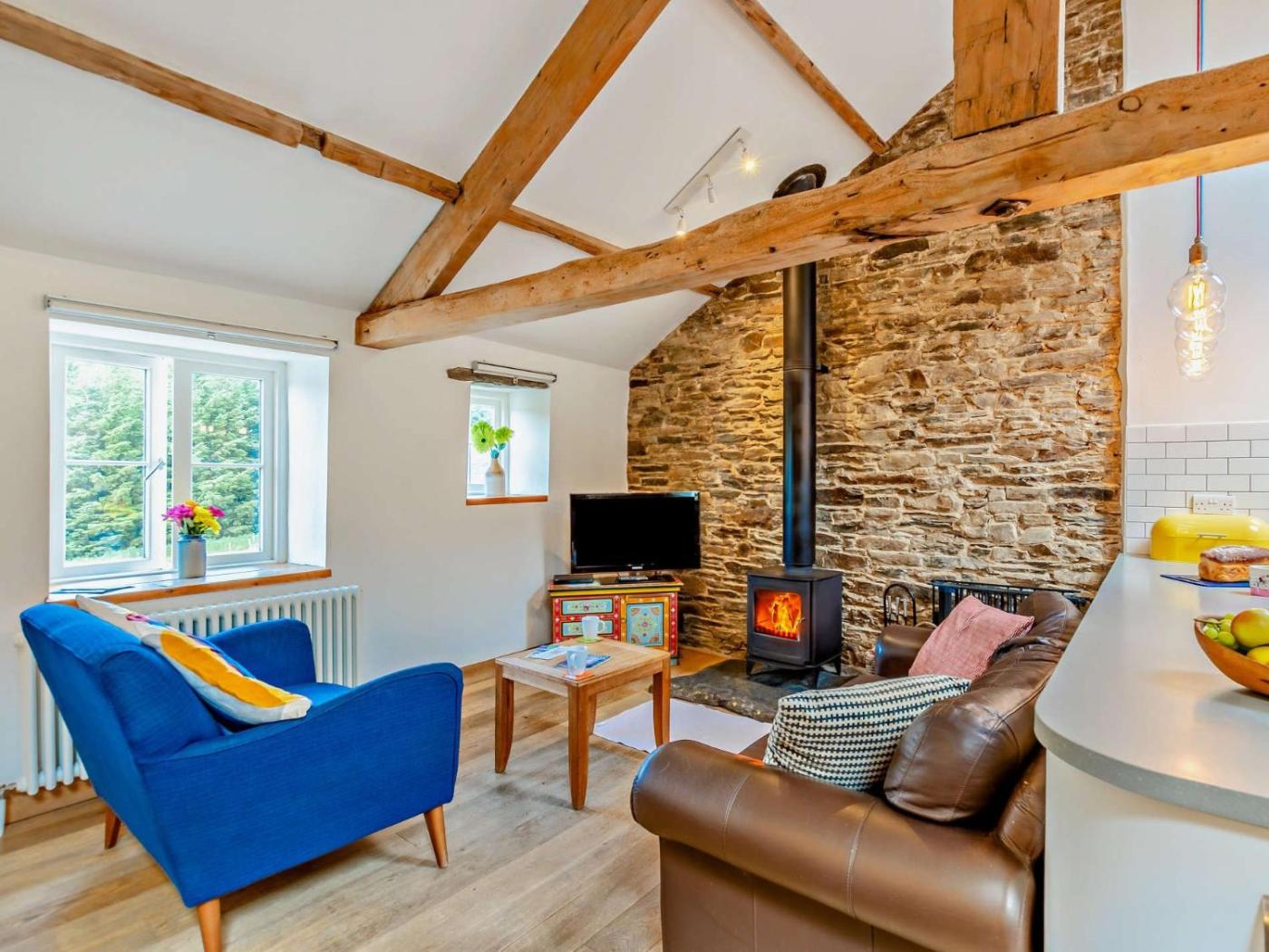 The holiday home features 1 bedroom, a fully equipped kitchen with a dishwasher and an oven, a washing machine, and 1 bathroom. A TV is featured. The accommodation offers a fireplace.