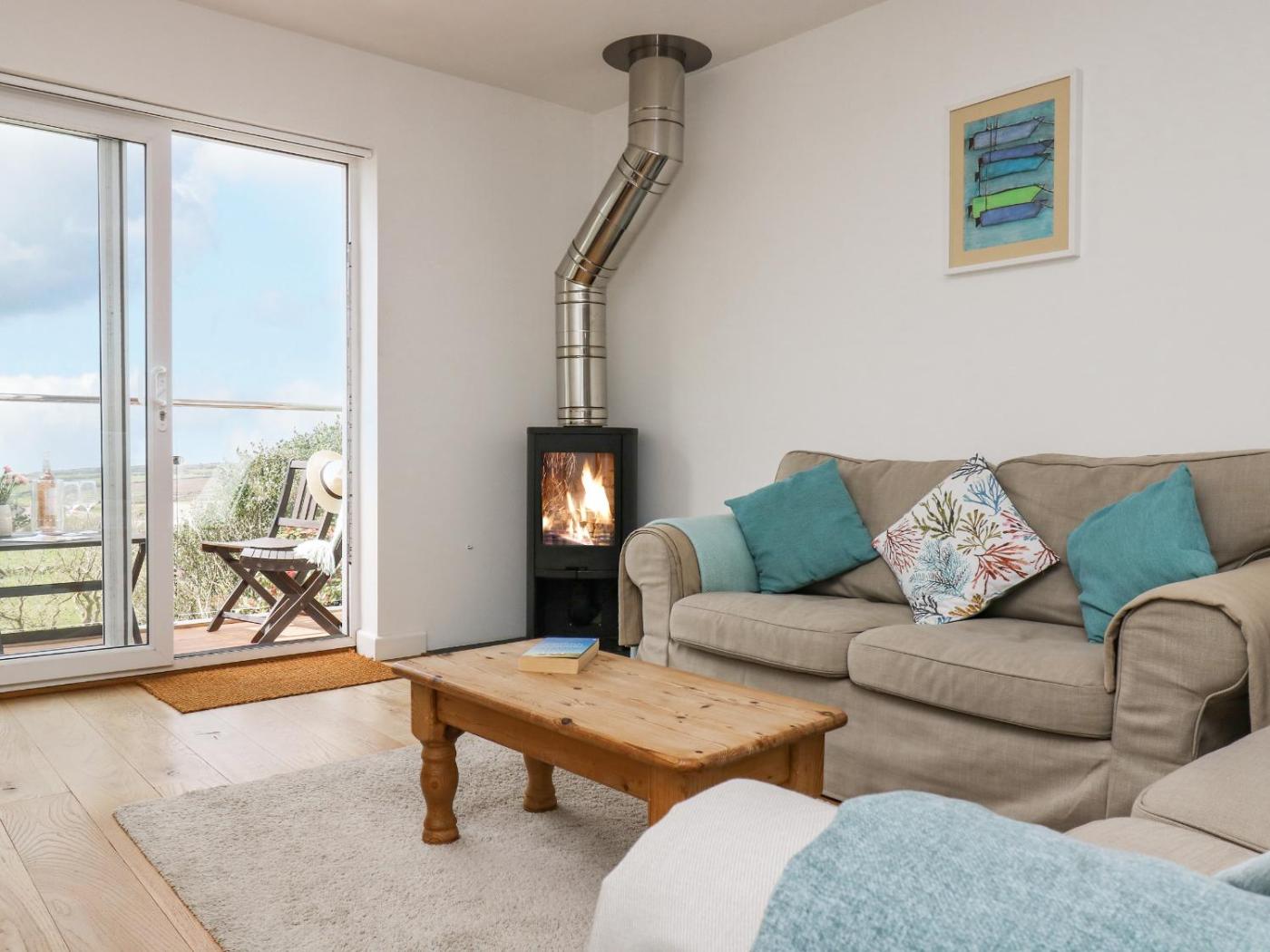 Holiday Home. This holiday home offers a fireplace. This holiday home comprises 2 bedrooms, a seating area with a sofa and 2 bathrooms with a walk-in shower. Meals can be prepared in the kitchen, which comes with a stovetop, a refrigerator, an oven and a toaster. The holiday home provides a washing machine, a dining area, a wardrobe, a TV, as well as sea views. The unit offers 3 beds.