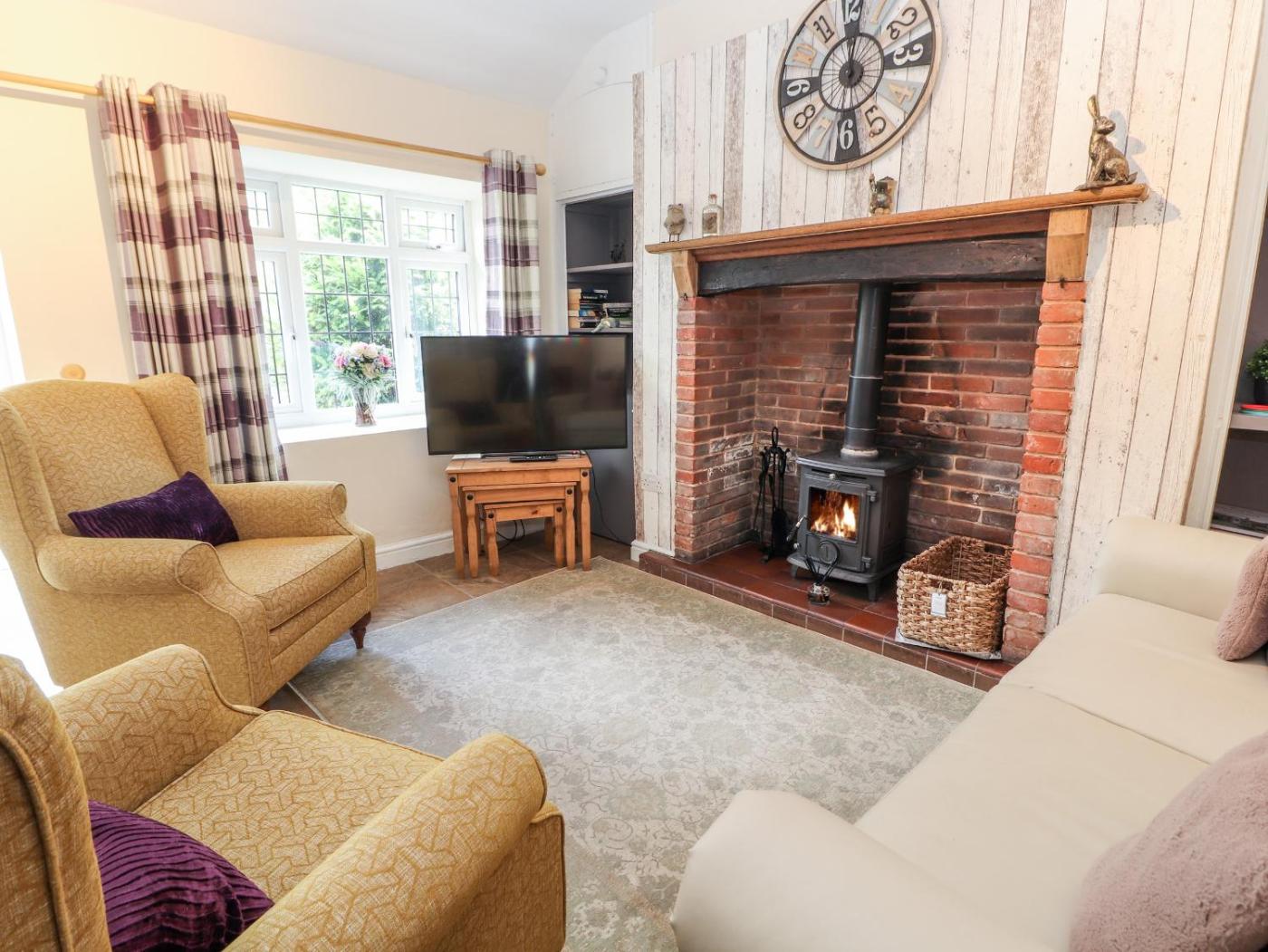 Holiday Home. The fireplace is the standout feature of this holiday home. This holiday home comes with 2 bedrooms, a seating area with a sofa and 1 bathroom with a shower. Meals can be prepared in the kitchen, which features a stovetop, a refrigerator, an oven and a microwave. The holiday home features a washing machine, a dining area, a wardrobe, tumble dryer, as well as a TV. The unit has 3 beds.