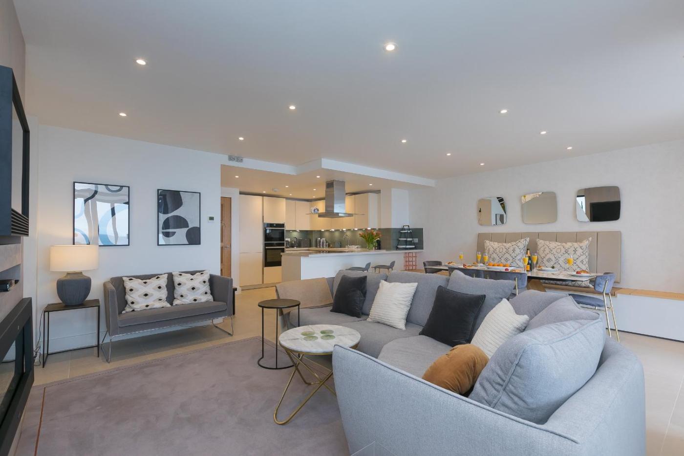 Apartment. Guests will have a special experience as this apartment provides a fireplace. This spacious apartment is comprised of a kitchen, a seating area, 2 separate bedrooms and 3 bathrooms with a walk-in shower and a hairdryer. In the well-equipped kitchen, guests will find a stovetop, a refrigerator, a dishwasher and an oven. The apartment offers a washing machine, a dining area, a wardrobe, a TV, as well as sea views. The unit offers 2 beds.