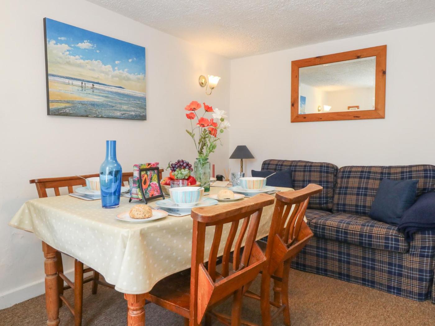 Holiday Home. This holiday home includes 2 bedrooms, a seating area with a sofa and 1 bathroom with a shower. The well-fitted kitchen has a stovetop, a refrigerator, a microwave and a toaster. The holiday home offers a washing machine, a dining area, a wardrobe, an electric kettle and a TV. The unit has 3 beds.