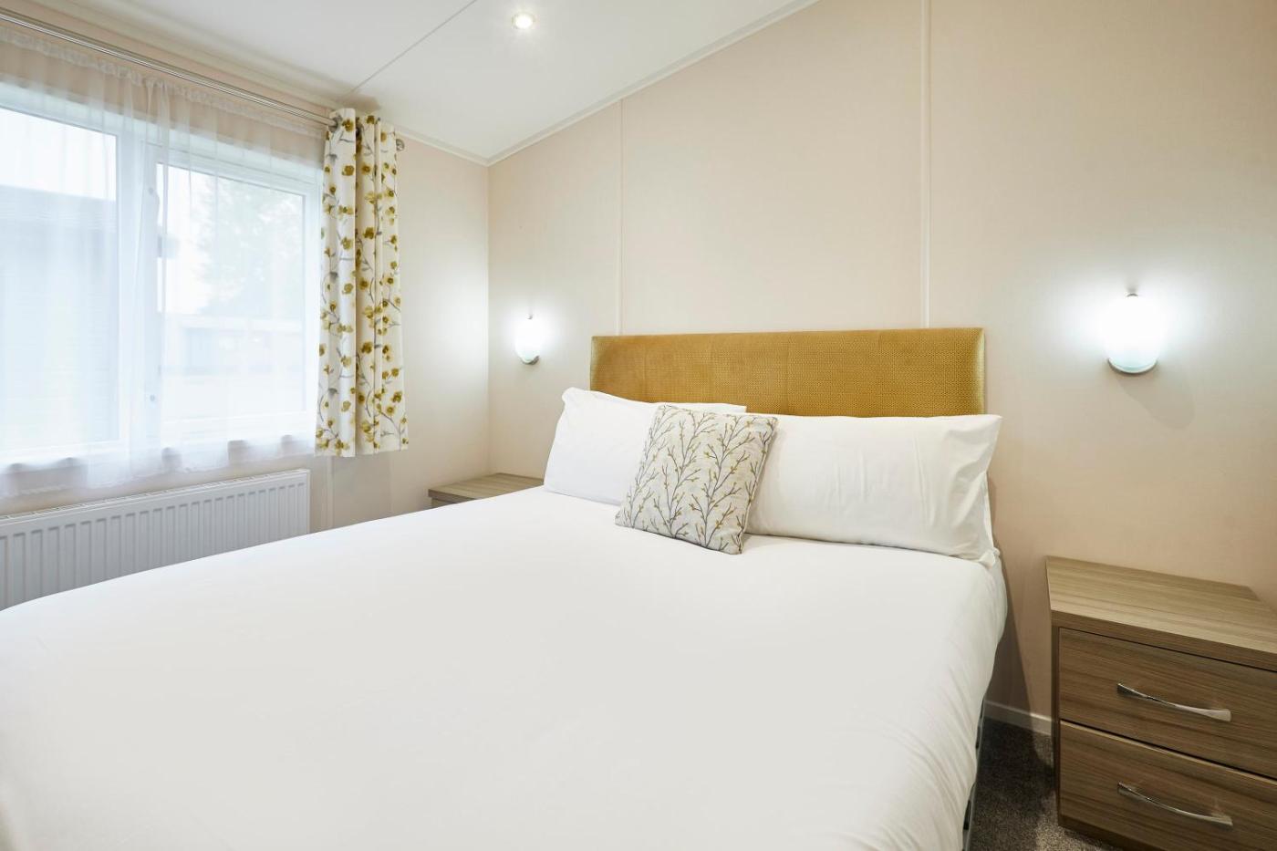 Two-Bedroom Lodge. This holiday homes standout features are the hot tub and fireplace. Boasting a private entrance, this holiday home includes 1 living room, 2 separate bedrooms and 2 bathrooms with a bath or a shower. Meals can be prepared in the kitchen, which is fitted with a stovetop, a refrigerator, a dishwasher and kitchenware. Featuring a balcony with garden views, this holiday home also offers a washing machine and a flat-screen TV. The unit has 4 beds.